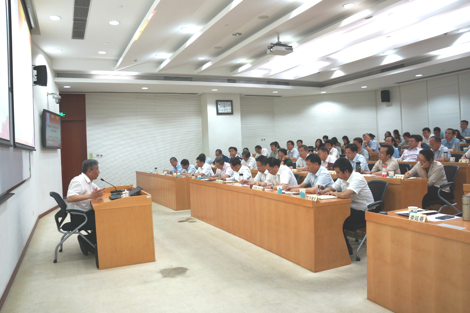 為扎實開展“不忘初心、牢記使命”主題教育,貫徹落實國資委黨委主題教育各項工作要求,6月10日至6月28日,集團黨委在中央黨校(國家行政學院)舉辦了“不忘初心、牢記使命”主題教育領導干部專題培訓班。培訓班分兩期,每期5天,集團領導班子成員、二級單位班子成員、董監(jiān)高人員、黨群人事部門負責人以及總部中層以上領導干部共計140余人參加了培訓。黨委書記、董事長、總經(jīng)理王德成主持了開班式。